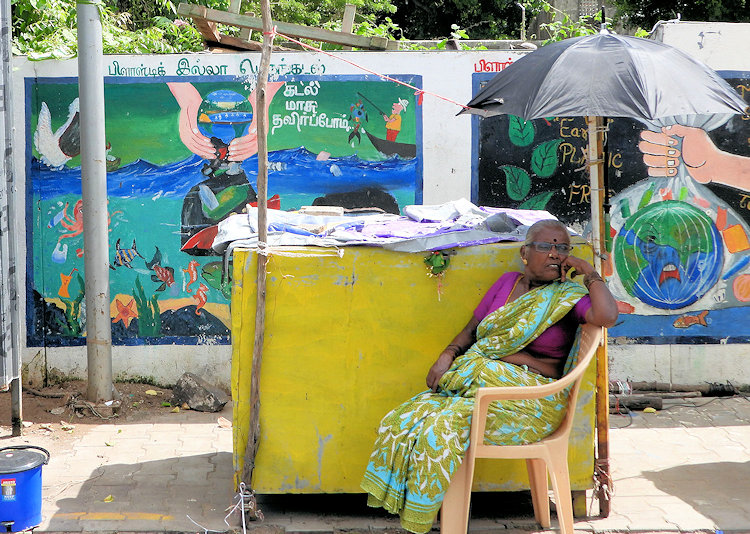 Mahabalipuram, au Tamil Nadu (Inde) – Campagne de sensibilisation – en tamoul et anglais – aux problèmes de pollution. Photo Ph. Pratx