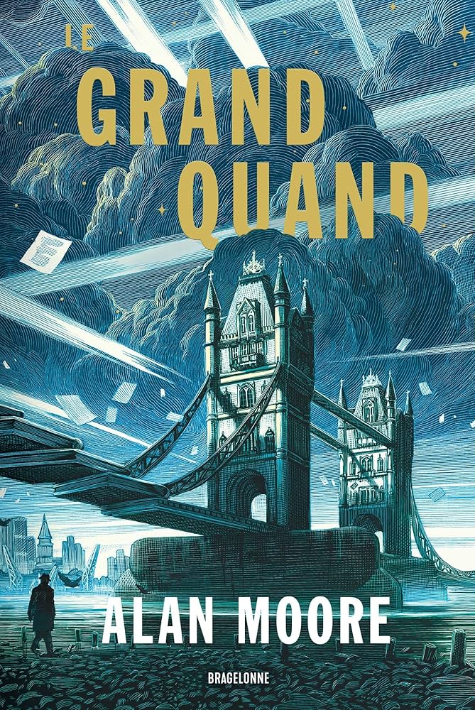 Le 9 octobre 2024, Alan Moore est revenu avec un troisième roman, Le Grand Quand, le premier volet de la pentalogie Long London. Tout aussi ambitieux, ce roman – qui fera prochainement l’objet d’une chronique sur Cheminez – raconte l’histoire de Dennis Knuckleyard, qui découvre en 1949 l’existence de l’autre Londres, une version de la ville située au-delà du Temps où les aspects de son histoire, depuis ses origines jusqu’à sa disparition, se manifestent.