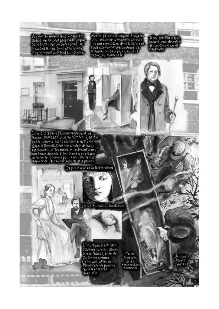 À son frère qui lui demande ce que raconte le livre qu’il est en train d’écrire, Alan Moore a envie de répondre : « Ça parle du message vital que les lèvres raidies des décapités articulent encore ; du testament de chiens noirs et spectraux écrit à la pisse à travers nos mauvais rêves. Ça parle d’invoquer les morts pour qu’ils nous disent ce qu’ils savent. C’est un pont, un carrefour, un point d’usure dans le rideau qui sépare notre monde du monde souterrain, entre le mortier et le mythe, les faits et la fiction, une gaze élimée, épaisse à peine comme une page. Il parle de la puissante glossolalie des sorcières et de leur révision magique des textes dans lesquels nous vivons. Rien de cela n’est exprimable. »