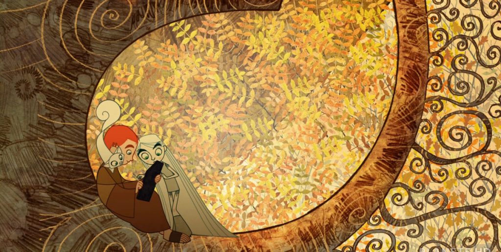 Revendiquant l’influence à la fois du film d’animation Le Voleur et le Cordonier du réalisateur canadien Richard Williams (1993), de l’art de Hayao Miyazaki, des illustrations du suédois du dessinateur John Bauer et du peintre symboliste autrichien Gustav Klimt, Tomm Moore propose un long-métrage d’animation mêlant Histoire et mythologie irlandaise. Le film raconte l’histoire du Livre de Kells, un manuscrit rédigé au VIIIème siècle, comprenant les Quatre Évangiles, et enluminé par des moines irlandais de culture celtique.