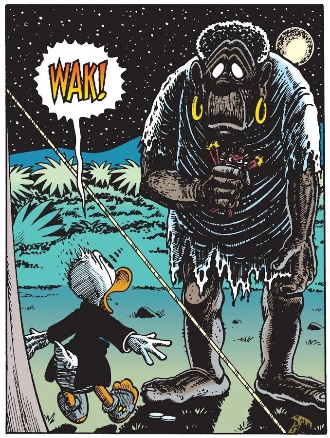 En plus de recourir à des tropes racistes, Carl Barks ne confronte jamais le canard le plus riche de Donaldville à son passé. Bombie le Zombie est avant tout un personnage comique, et son histoire relève davantage d’une aventure de Donald, qui cherche à lever la malédiction pesant sur lui, que de Picsou, relégué à un rôle très secondaire.