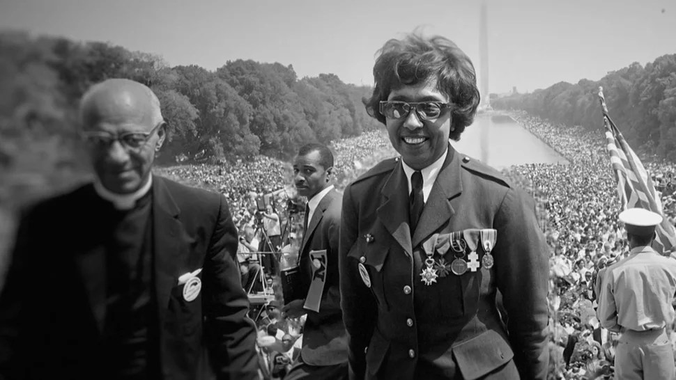 L’engagement de Joséphine Baker contre le racisme s’incarne surtout dans sa lutte contre l’apartheid en Afrique du Sud et son soutien au mouvement américain des droits civiques dans les années 1960. Le 28 août 1963, elle se tient aux côtés de Martin Luther King lors de la Marche sur Washington pour le travail et la liberté. Ce jour-là, immortalisé par le discours « I Have a Dream » du pasteur, Joséphine Baker prononce elle aussi un discours, vêtue — non pas d’une ceinture de bananes mais — de son uniforme de l’armée de l’air française.