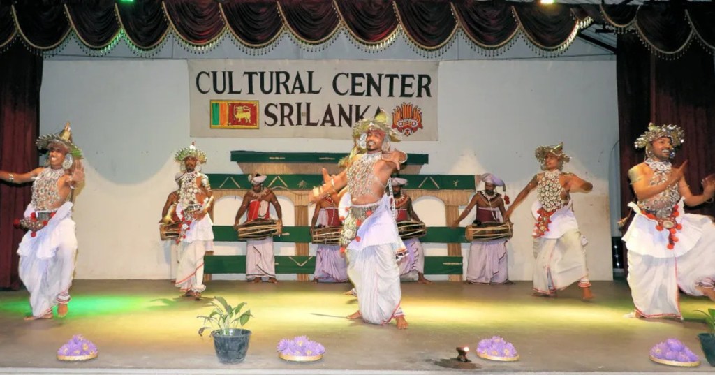 La danse la plus classique dans la tradition sri lankaise est la danse kandyenne, du nom d’une ancienne capitale de l’île, Kandy, dans les hautes terres. Comme pour ses cousins indiens, les origines de ce style sont associées à des légendes mythologiques : un certain roi aurait quitté le continent et serait venu dans l’île pour être libéré d’un rêve récurrent où apparaissait un léopard. C’est un rituel chorégraphié, le Kohomba kankariya, lié à la divinité Kohomba, qui aurait ainsi détourné du roi la malédiction à la source du cauchemar dont il était hanté. La danse Ves, exécutée durant ce rituel d’exorcisme, devint dès lors populaire parmi les autochtones et se perpétua à travers les siècles, avec en particulier un regain d’intérêt après la fin de la domination britannique.
