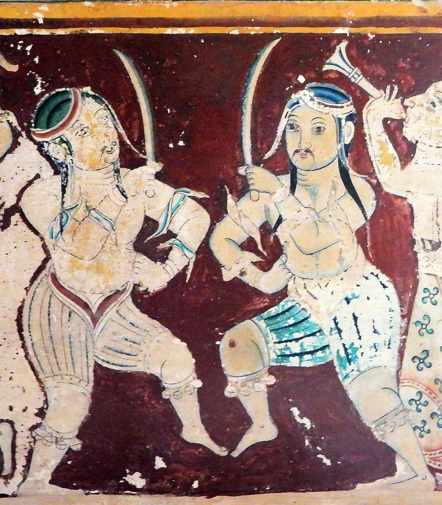 L’histoire de cet art martial remonte bien sûr à des temps beaucoup plus lointains, mais ses origines restent nimbées d’incertitudes et de légendes. Les plus audacieuses des hypothèses, parlent de tribus aborigènes qui auraient créé ces techniques de combat il y plus de… 30 000 ans. La mythologie raconte aussi que le roi-démon de Lanka, Ravana, un des personnages principaux de l’épopée du Râmâyana, aurait utilisé l’Angampora pour combattre le héros Râma, il y a quelque chose comme 4 ou 5 000 ans.